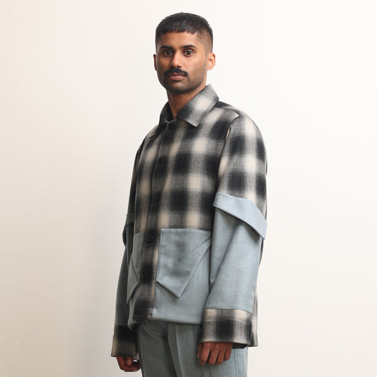 Actin Wrinkled Maheshwar Overshirt- Blue