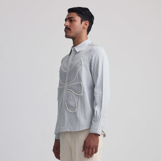 Vertebrae Symbolic Shirt Full Sleeves - Blue and White Stripes