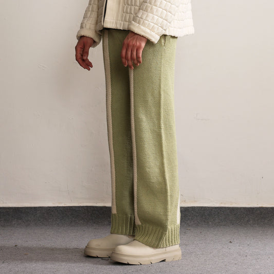 Fibula Striped Hand-knitted Trousers- Pista Green