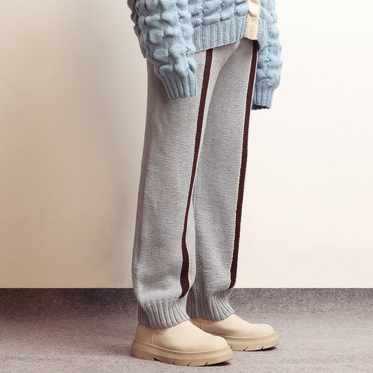 Fibula Striped Hand-knitted Trousers- Sky Blue