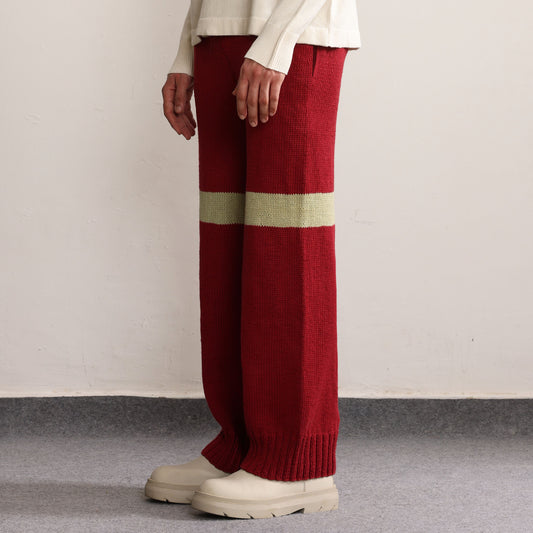 Fibula Striped Handknit Trousers-Maroon