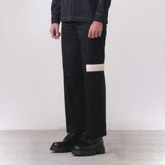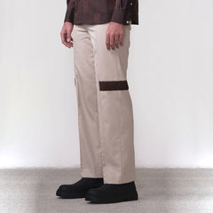 Patch pocket with flap on either sides, Hand-knitted tape detail on patch pockets, Human symbol cut at back.