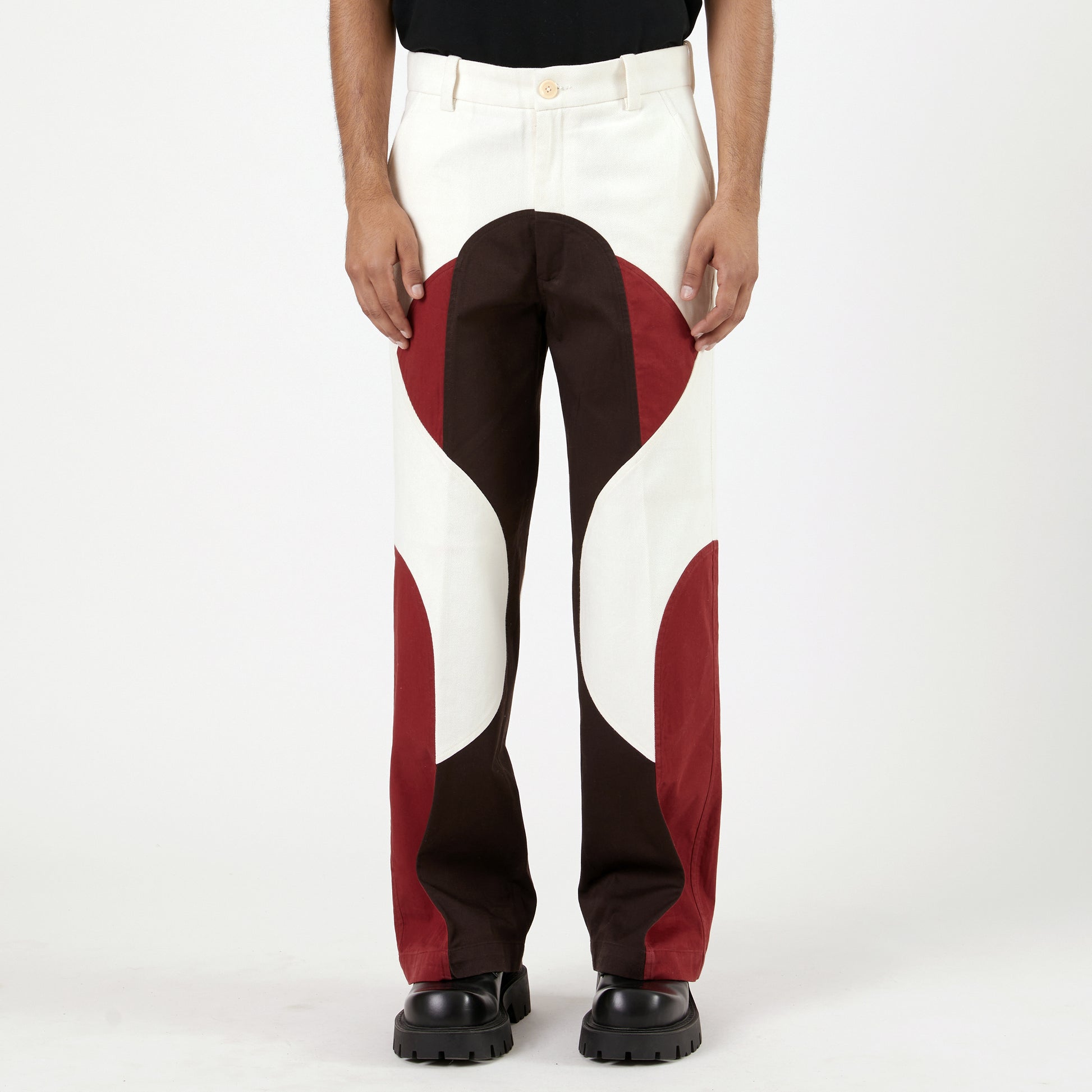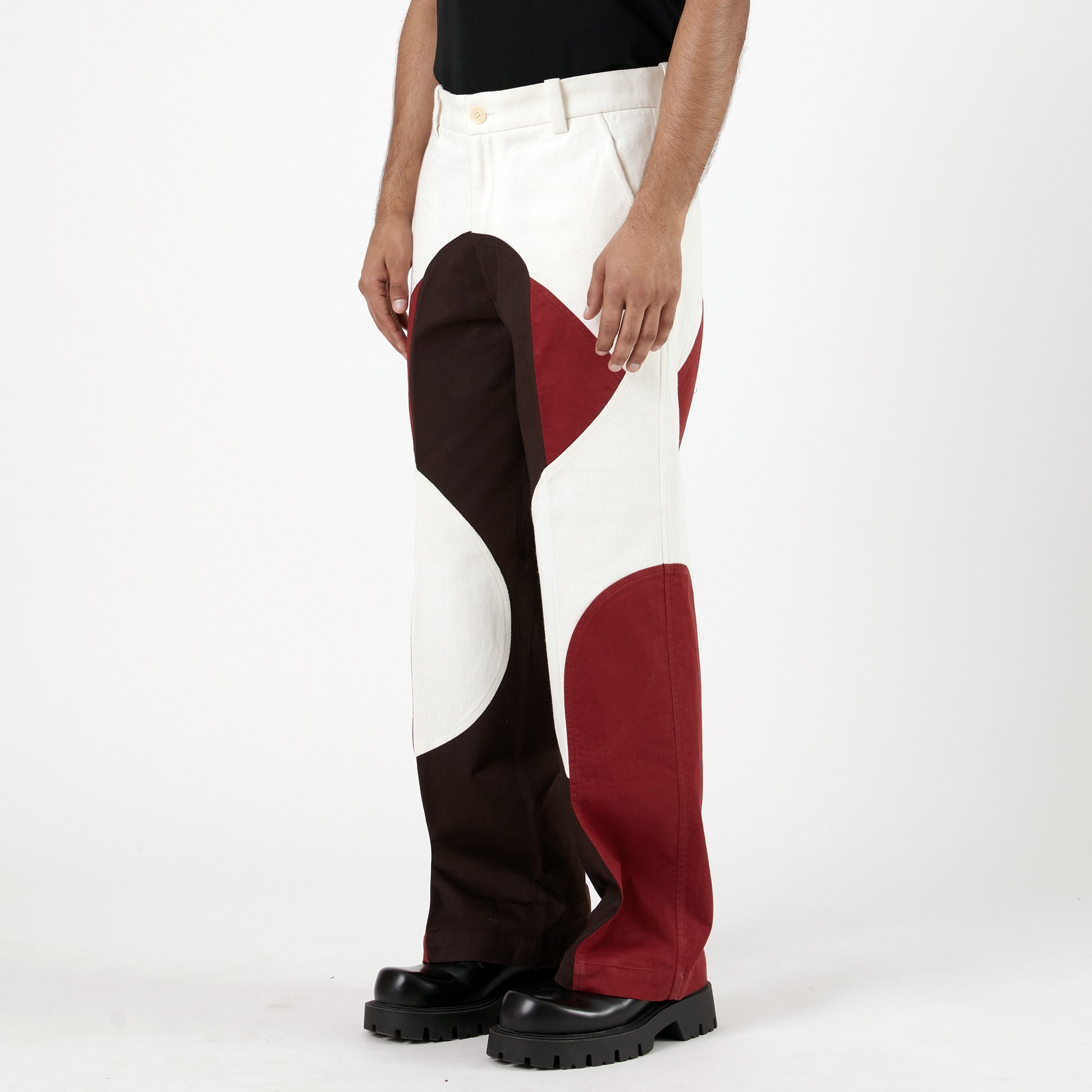 Border Panelled Trousers-Red