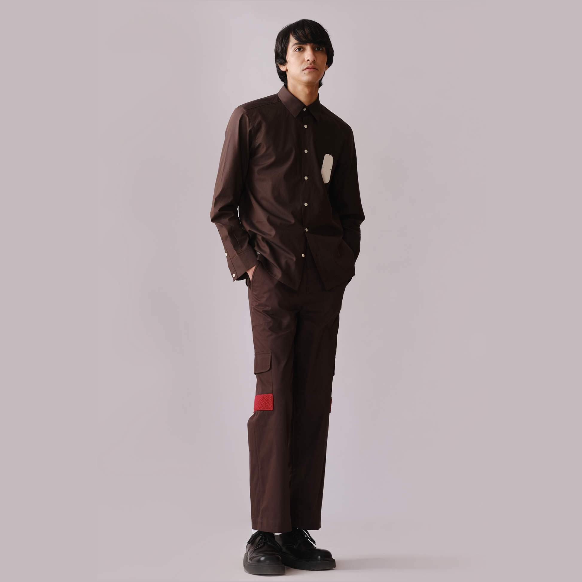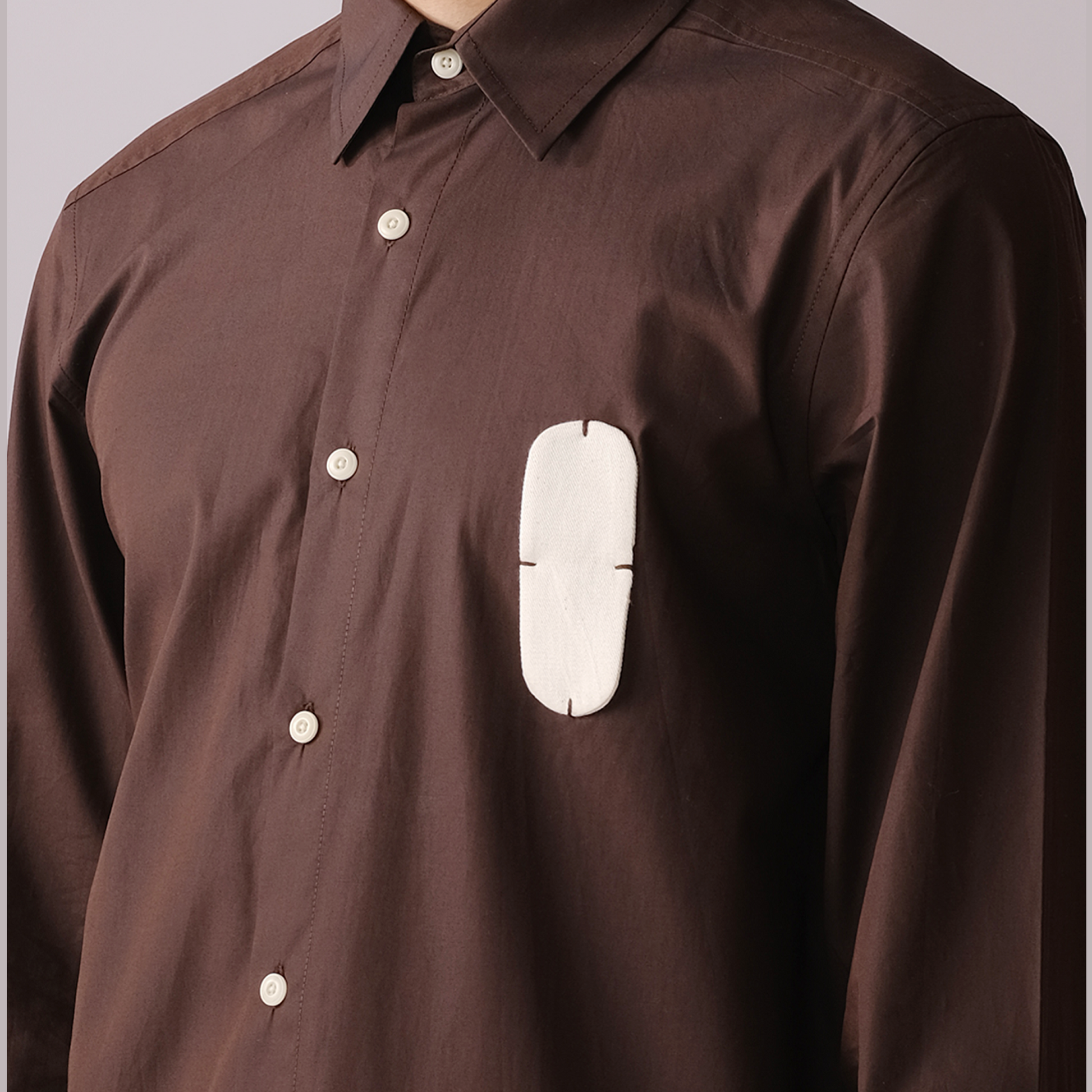 Oxford Collar, Full Sleeves, Human symbol in front with handtacks,Loops at side hem and across back.