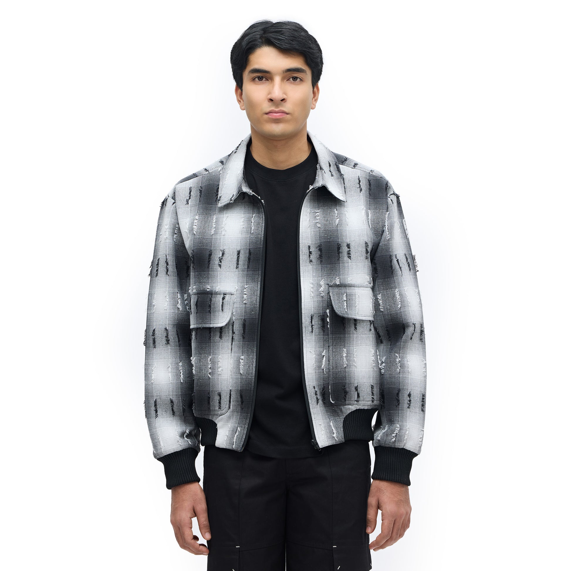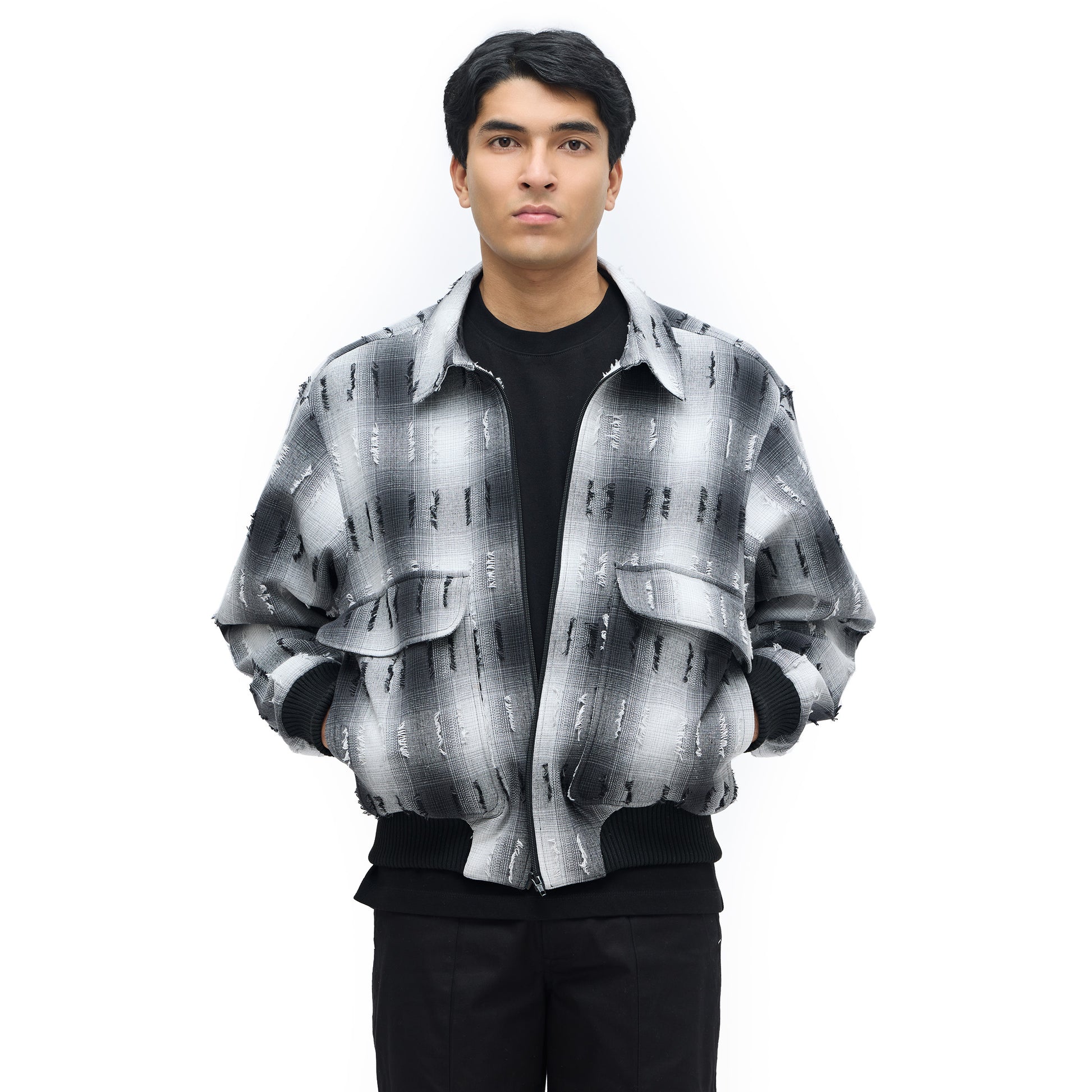 Crafted in our signature Medullary flannel with extra-weft detailing, this jacket brings depth to a classic check. It features a cropped, relaxed silhouette with a front zipper, oversized waist patch pockets with side entry, and an inside patch pocket. Finished with signature Margn cuts, it pairs effortlessly with solid silhouettes, letting the checks break the form.