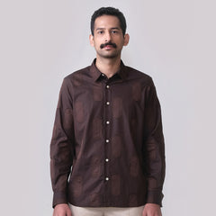 Hand appliqued human symbols with argyle stitch on top, Oxford Collar, Corozo buttons, Full Sleeves.