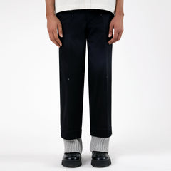 A signature Margn silhouette—straight fit pants with a handknit hem nodding to military regiments. With a straight fit, bartack detailing throughout, and a single bone welt pocket at the back, this piece blends craft, function, and symbolism in one refined design.
