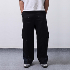 Symbolic cut in front, Bartack throughout, Pleat with concealed zipper on side of knees, Welt pocket at back.